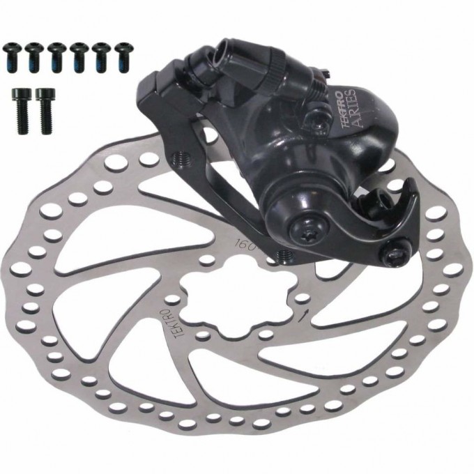 Тормоз дисковый механический Aries MD-M300 Tektro передний, крепление IS Standard & Post Mount, алюминиевый, чёрный, в комплекте с болтами, с ротором