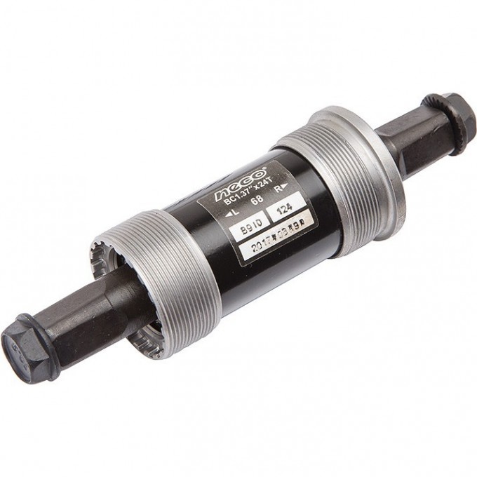 Картридж каретки B910 NECO, ширина каретки 68 мм, длина оси 124,5 мм, резьба 1.37"x24tpi, крепление шатунов под квадрат, стальные чашки, стальной корпус