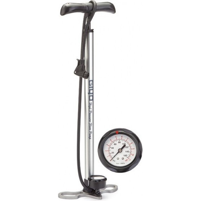 Насос GF-01 Giyo ручной напольный с манометром, алюминиевый корпус, вентиль Presta/Автовентиль, серебристо-чёрный
