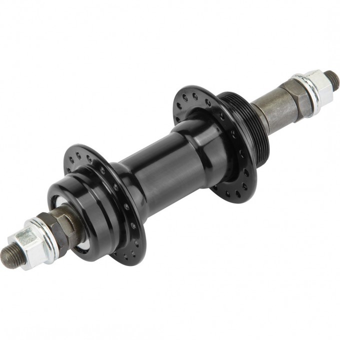 Втулка задняя 434 Joytech, MTB, на 32 спицы, под гайку, под трещотку на 5-7 скоростей, O.L.D. 130 мм, диаметр фланцев по отверстиям для спиц 45 мм, расстояние между фланцами 57 мм, ось 10х170 мм, стальной корпус, чёрная, 367 г